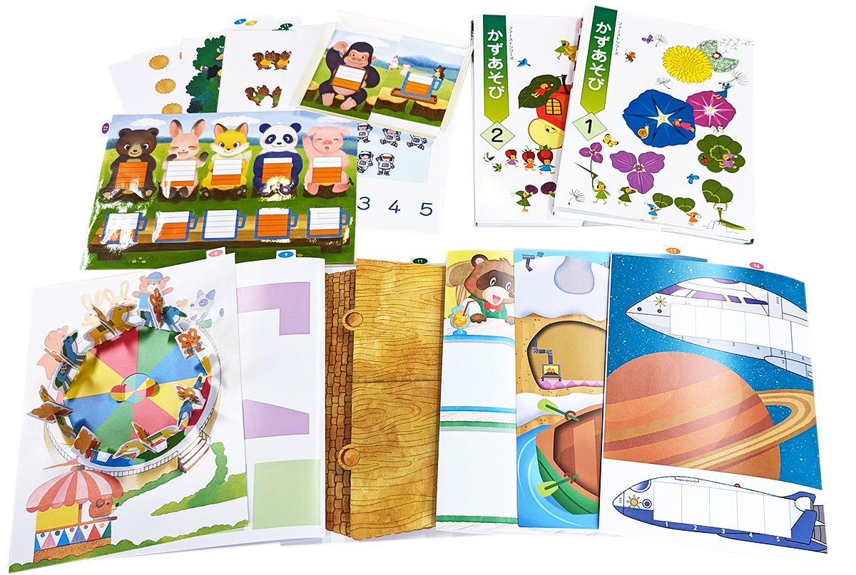 年中児から使用します。学習の根幹である思考力の「芽」は、子どもが、未経験な出来事や未知のものに出会った時に、「なぜ?」「どうしたらいいの?」といった疑問を解決しようとするところから生じます。この教材は、子どもにとって身近な自然環境や、日常生活の中で出合うさまざまな物や出来事を楽しいあそびにしたもので、物をよく見てその性質を発見したり、物と物との関わり合いを見たり、自分と物との関係を発見したりして、楽しさや成功の喜びを味わいながら、自然に、自分で考えたり判断したりする習慣が身につくように編集されています。
